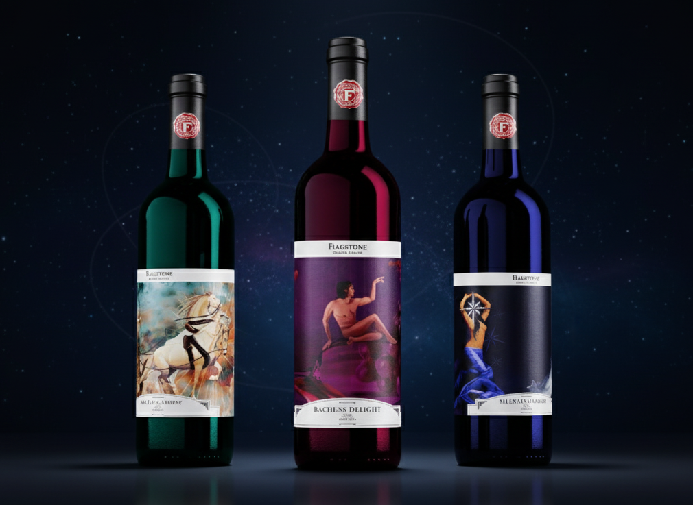 This project forms part of a conceptual rebrand for Flagstone Wines, centered around myth-inspired storytelling and immersive experiential design. My primary responsibility was leading the illustration and label redesign, developing a visual language that merges classical mythology with contemporary elegance. The goal was to highlight Flagstone’s narrative-driven philosophy through symbolic, detailed artwork that appeals to younger wine consumers.