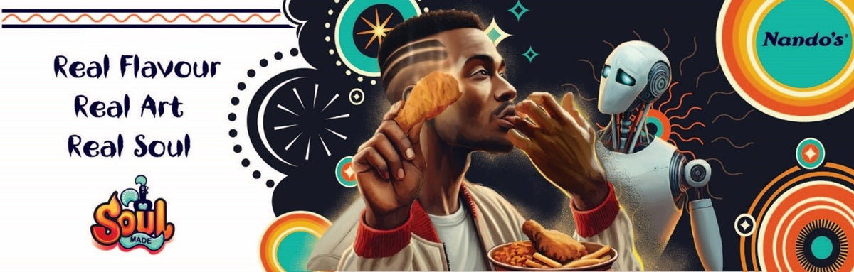 Partnering with Nando’s, a brand known for its humour, social commentary, and long-standing support of local artistry, the campaign titled “Don’t Let It Cook the Whole Menu” aimed to spark conversation around the irreplaceable value of human creativity. The concept used Nando’s signature tone to approach a serious issue, positioning artists not in opposition to AI, but as the authentic soul behind creative work.