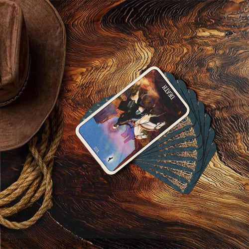 The project explores how genre influences symbolic meaning and visual tone. Traditional tarot themes of fate, surrender, transformation, and emotional duality are translated through motifs connected to the country narrative—rope, stars, desert iconography, and cowboy hats. The process focused on evolving literal early-stage illustrations into more intentional symbolic compositions, enhancing the emotional resonance and spiritual undertones while preserving the charm and grit of the original concept.